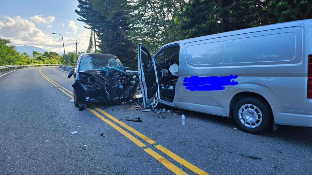 宜蘭員山通往太平山道路七日下午二點多發生一起對撞車禍,兩部休旅車在職訓場前發生對撞,造成其中一部黑色車輛起火,隨後被緊急撲滅,車上五人全都受傷送醫,車禍原因還在釐清當中。