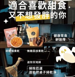 此一萬聖節禮盒內含品芯食業的砂糖橘果乾,以及象牙白文創的無糖玉荷包荔枝果乾;前者嚴選臺灣在地種植砂糖橘,經殺菌與低溫慢烘精準保留約16%含水量,風味酸甜清新,盈滿爽口滋味;後者則使用全國模範農民的產銷履歷大樹玉荷包,經長達一百小時的細心烘焙,完全零添加、無調味,保留荔枝最原始的甜味,濃郁香氣與Q彈口感,絕對是不分老少都愛的天然甘甜!