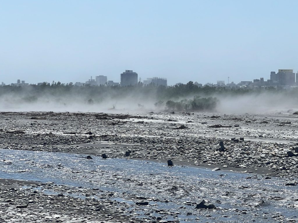 受今年首波東北季風影響,卑南溪河床又掀起「風飛沙」,遭樺加沙颱風沖毀的水覆蓋,部分河道裸露區域尚未修復完成,八日上午出現揚塵,家具和車輛都蒙上一層灰,空氣品質差,民眾無奈,縣府呼籲民眾加強自我防護措施。