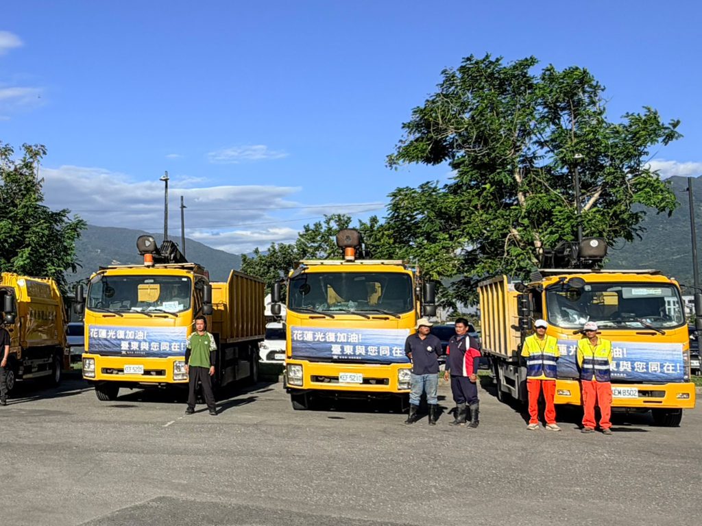 此次行動由台東縣環保局聯合台東市、池上鄉、金峰鄉及關山鎮等公所組成支援團隊,共出動十八人及多輛專業車輛,包括抓斗車、壓縮式垃圾車、山貓小型運土卡車及高效消毒車,深入光復鄉災後重點區域,展開大規模環境清理與消毒作業。