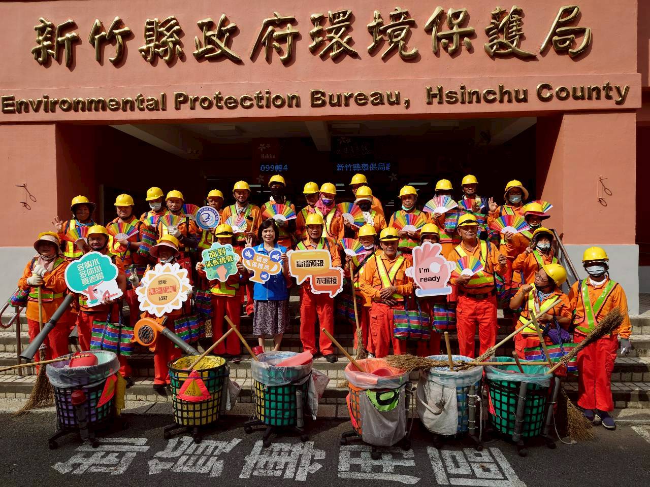 環保局表示,隨著夏季高溫日數逐年增加,環保局針對交通警察、清潔隊員、農民、外送員等長時間暴露於戶外的工作族群,辦理四場次宣導活動,共有一百位勞工參與。現場除了說明防範熱傷害的重要性外,也發放「高溫調適包」。