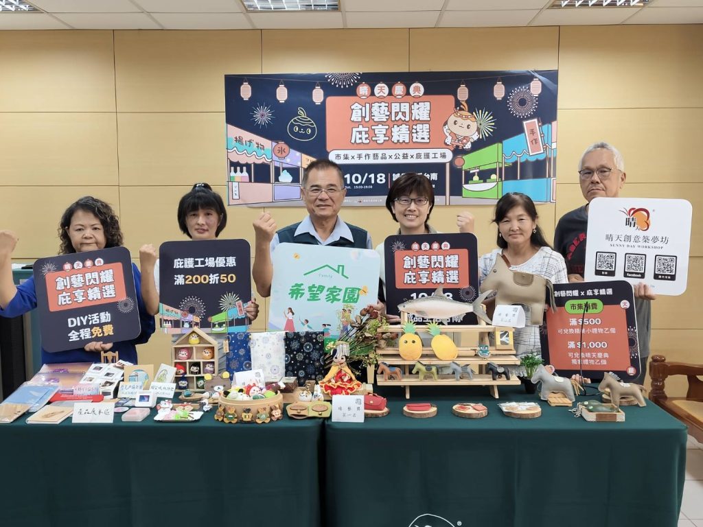 南市勞工局為輔導設立的庇護工場、晴天坊夥伴聯合行銷,十八日下午三時將在誠品生活台南推出「創意閃耀 庇享精選」市集,現場將設置二十六個攤位,台南六家庇護工場的特色產品、二十攤特色手工藝品牌,可以一次買個夠,還有各式體驗DIY活動、音樂及魔術表演,有如一場嘉年華活動。