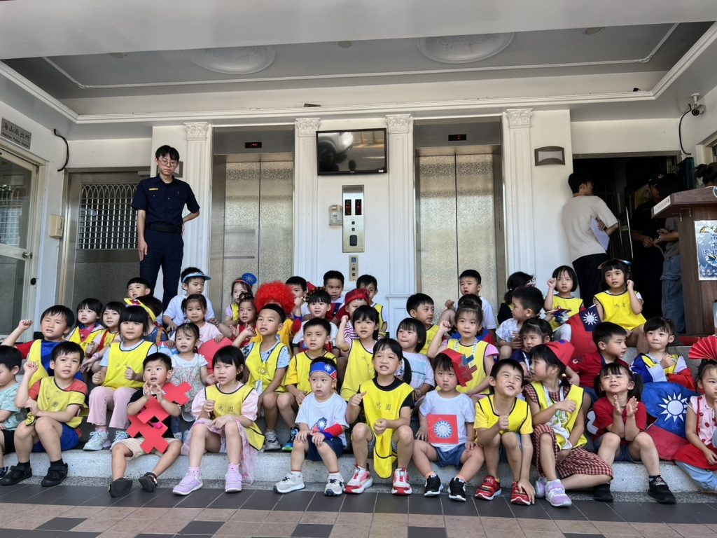 幼兒園的老師帶著一群小小朋友們,八日上午到海山警分局進行參訪活動,也因雙十國慶將近,同時讓幼童們裝扮有關雙十節的服裝進行遊行,第一次這麼近距離接觸警察,讓他們都顯得格外興奮。