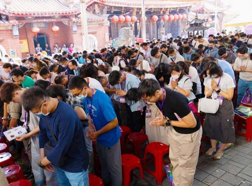 台中市樂成宮今年的未婚聯誼活動,深受單身男女的歡迎,吸引四百名單身男女參加。(記者陳金龍攝)