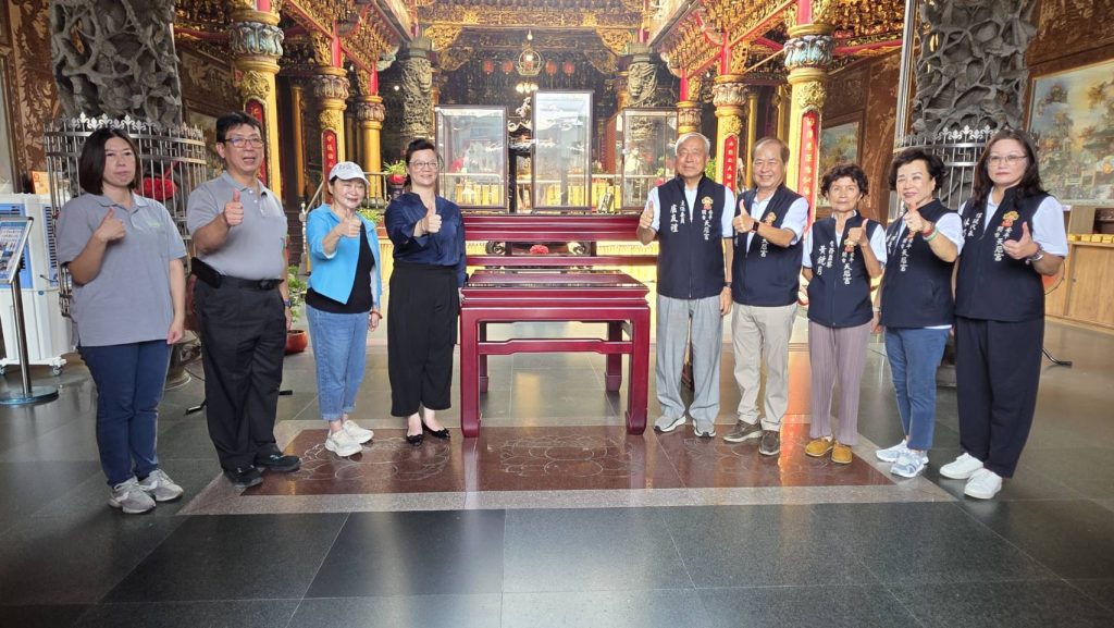為感謝神明庇佑幫助,董事長方怡清九日特別將訂製的頂下桌,以父親名義捐贈給天后宮文物館展覽,九日會同家人至安平開台天后宮捐贈,由廟方主委盧友禮、總幹事林國明等代表接受。
