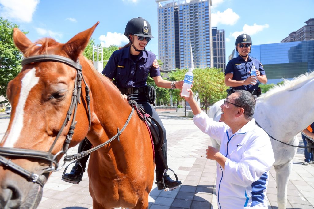 市長侯友宜在九日國慶日前夕前往慰勞騎警隊同仁,感謝他們代表新北市參加國家慶典,展現城市形象與警察專業。侯友宜親自致贈運動飲料,關心隊員訓練情形,並表示感謝所有騎警在烈陽下和風雨中,都堅持訓練、全力以赴,為明日登場的演出做好萬全準備,在國慶舞台上展現新北榮耀。