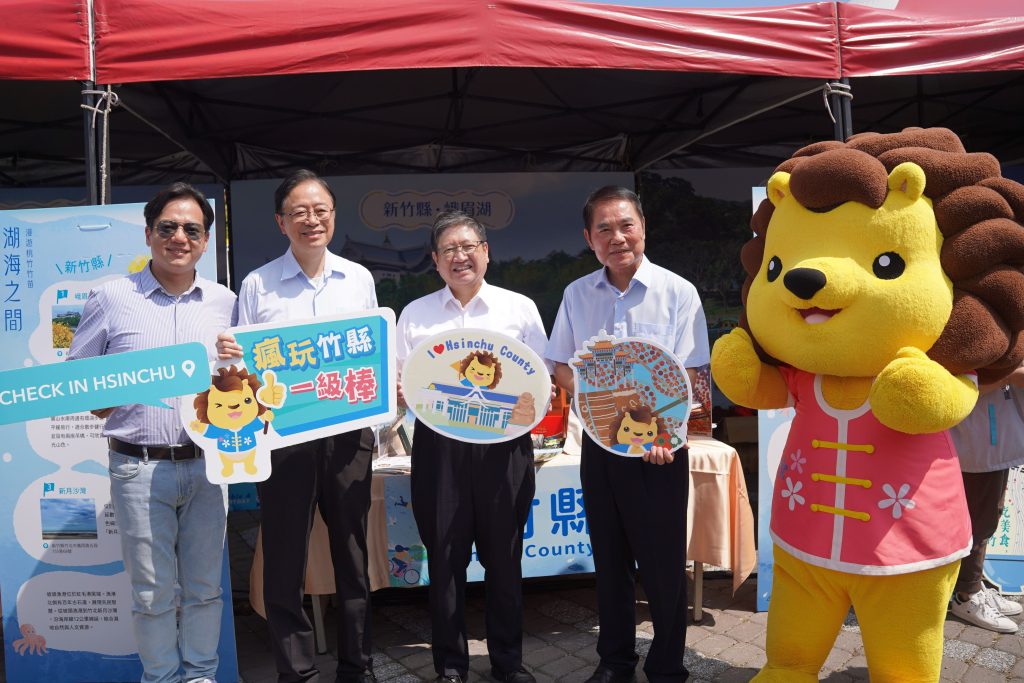 楊文科於會中推廣竹縣的觀光成果。其中,甫獲觀光署「觀光一百亮點獎」的峨眉湖,旅客可搭乘綠色電動遊艇環湖,沿途欣賞湖面倒映的山色美景,並順道走訪全台最高的大佛像,體驗宗教人文之美。