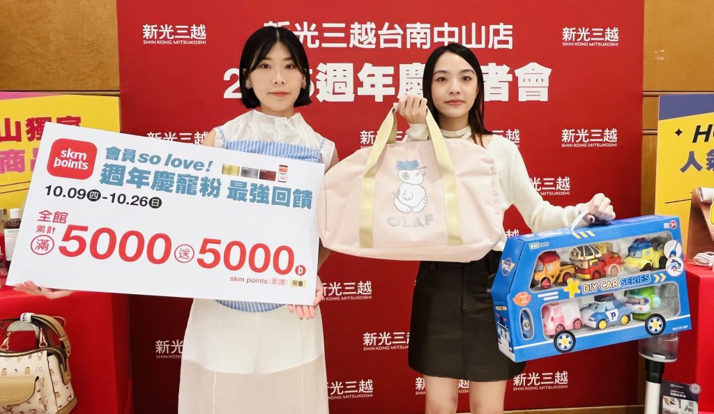 新光三越台南中山店以「年度最強回饋」為主軸,推出全館滿五千送五千點、化妝品單筆滿二千送二千點的高額回饋,更首度加碼「skm pay指定業種滿萬送萬點」與中山店限定「購買指定美妝明星組再贈一千點」活動,讓會員一次爽拿多重好康,點數回饋再升級。