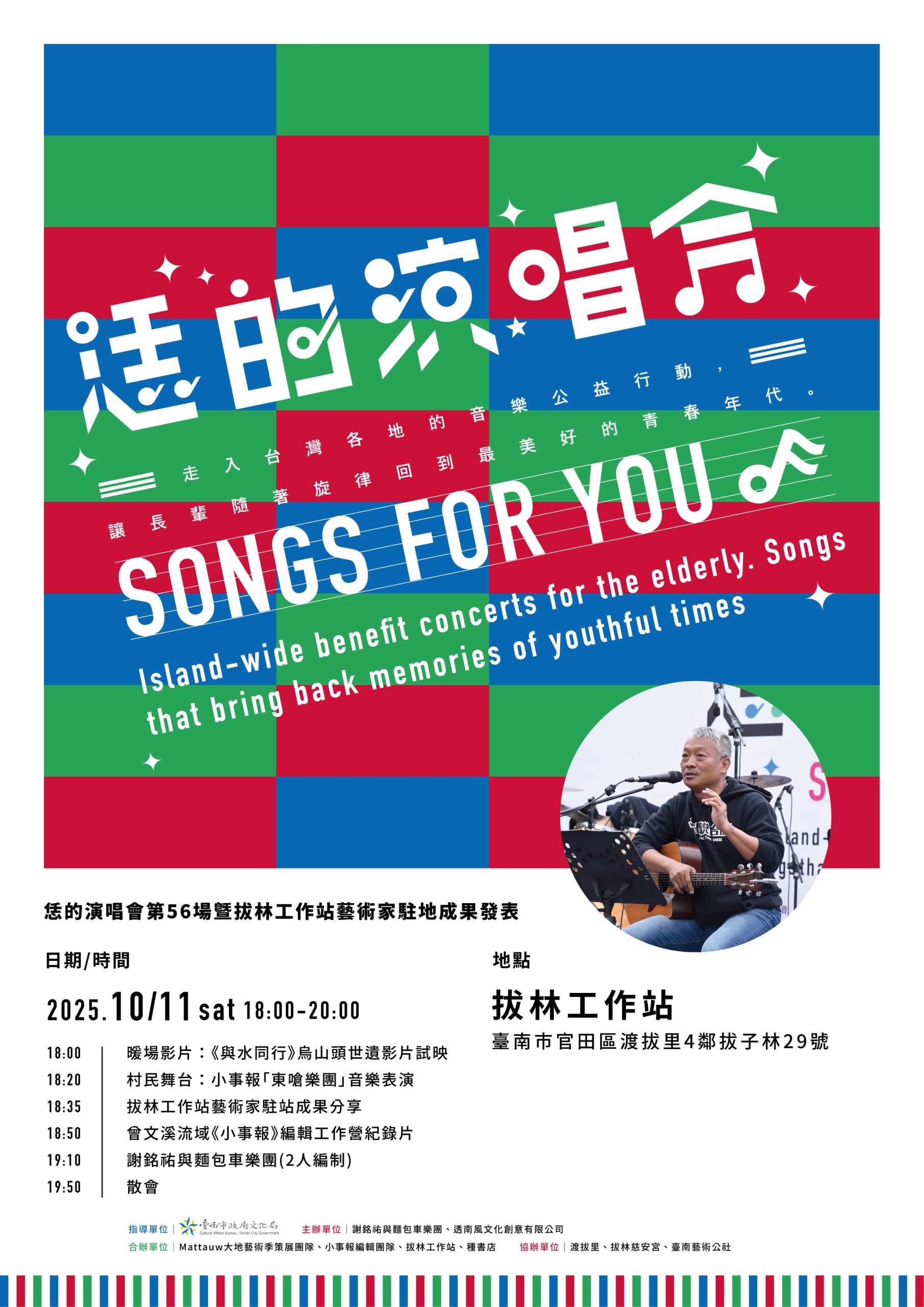 活動在十一日晚間六時到八時舉行,活動有《與水同行》烏山頭世遺影片試映、小事報「東嗆樂團」音樂表演、拔林工作站藝術家駐站成果分享、曾文溪流域小事報編輯工作營紀錄片、謝銘佑與麵包車樂團演出。