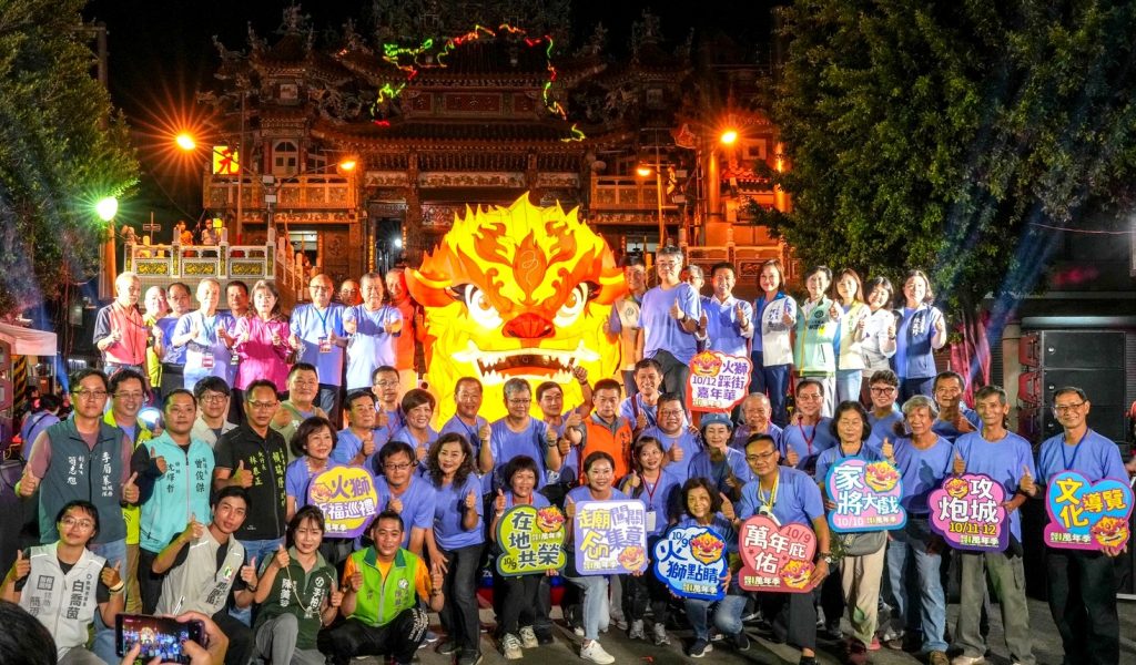 2025高雄左營萬年季,9日晚上舉行火獅開光點睛儀式後活動正式熱鬧登場。(記者許正雄翻攝)