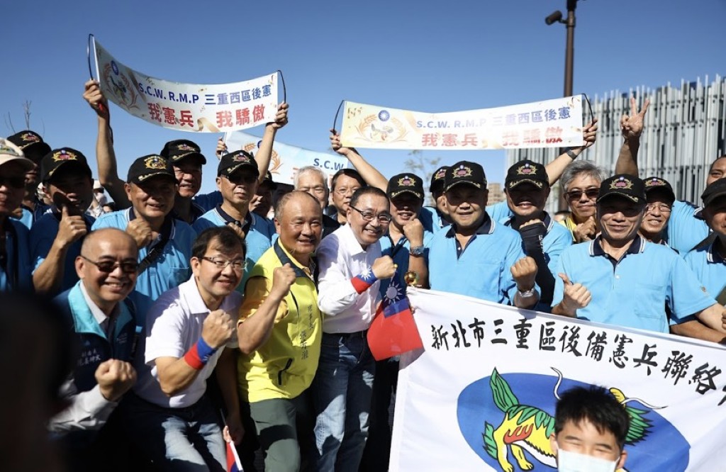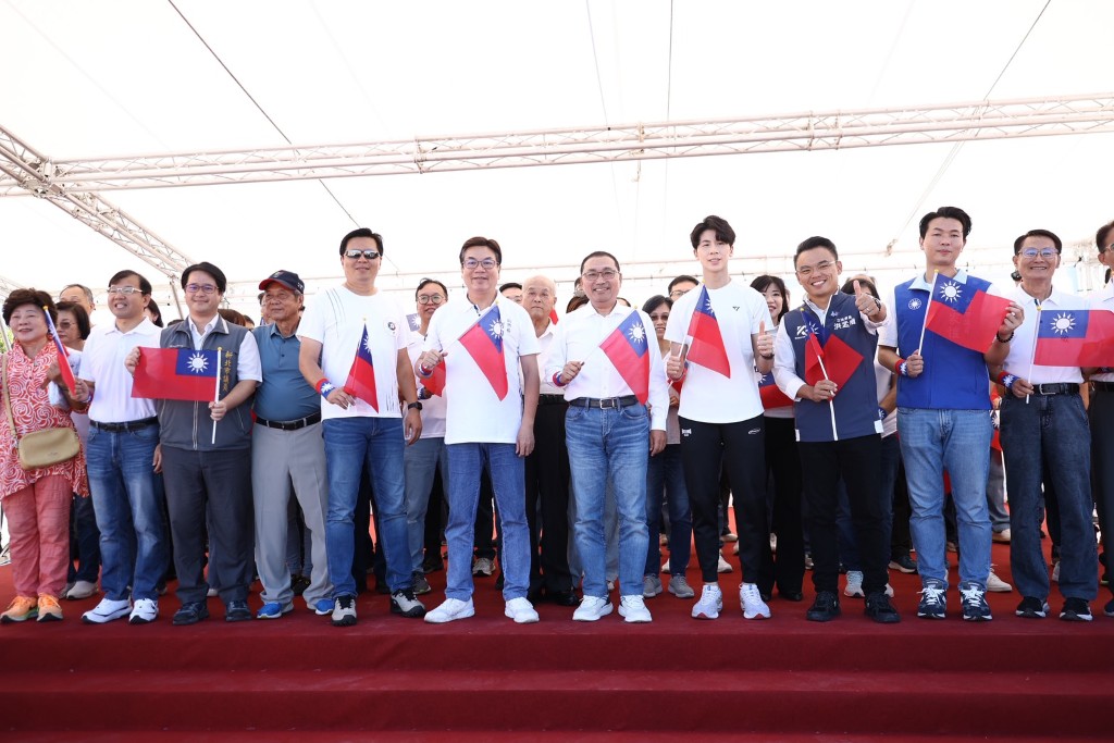 市長與市民共同合照,歡慶國慶。(新北市民政局提供)