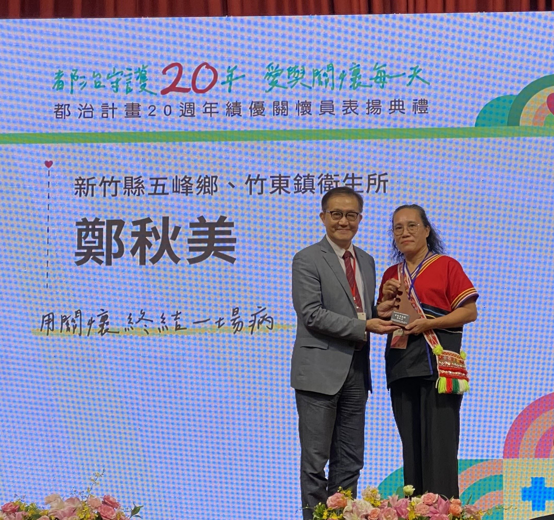 另一位獲獎的鄭秋美關懷員,在五峰鄉耕耘結核病防治工作長達二十年,也常支援竹東等地區的送藥工作。她分享曾遇過一位堅信自己「不可能得病」的個案,起初每天須花近一小時耐心溝通,才能讓對方願意服藥,經過持續關懷與衛生所團隊合作下,這位個案不僅順利完成療程,日後甚至成為她的「得力助手」,主動協助找出需要篩檢或治療的民眾。鄭秋美認真負責,常常騎著摩托車翻山越嶺送藥的身影,令人動容。