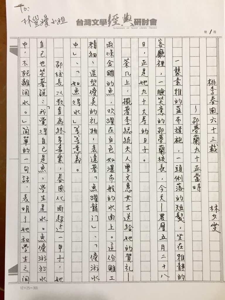 手稿多珍貴啊!作家們早就改用電腦寫作,文稿都是硬梆梆的白紙黑字,那溫暖的手寫稿,去哪找呀!我的手稿也早捐給《國家圖書館》和《文訊》永久典藏,所剩無幾,即使有也不知放在哪了。我認真地翻箱倒櫃找了又找,竟然還找出一疊二十多年前的手稿,而且保存良好,真是喜出望外。對於沒有舊手稿的作家,我請他們找出久已不用的稿紙,認真抄寫幾頁自己發表過的文章。字寫得好不好看一點都不重要,手稿雖是新的,但是珍貴絲毫不減。。