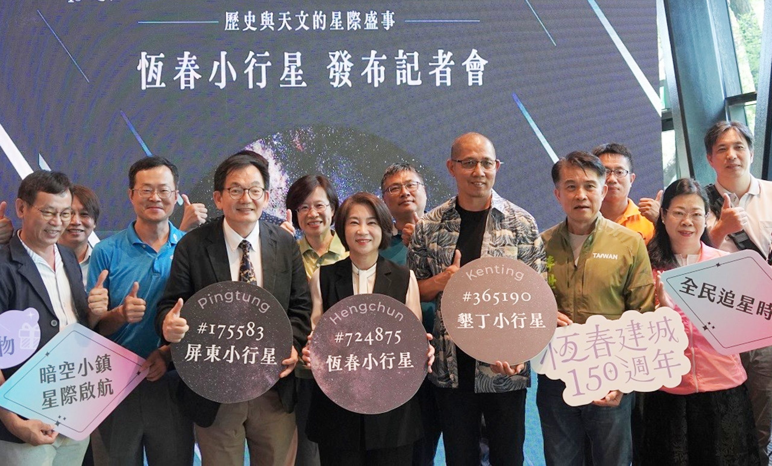 今年適逢恆春建城150週年,屏東收到來自宇宙的驚喜祝福!由國際天文學聯合會審查通過,第724875號小行星正式命名為「恆春」,發布會由國立中央大學副校長陳文逸率鹿林天文台台長林宏欽等團隊參與,發現「墾丁」小行星的天文愛好者蔡元生也親臨見證,並由屏東縣星空大使施世治簡介小行星。