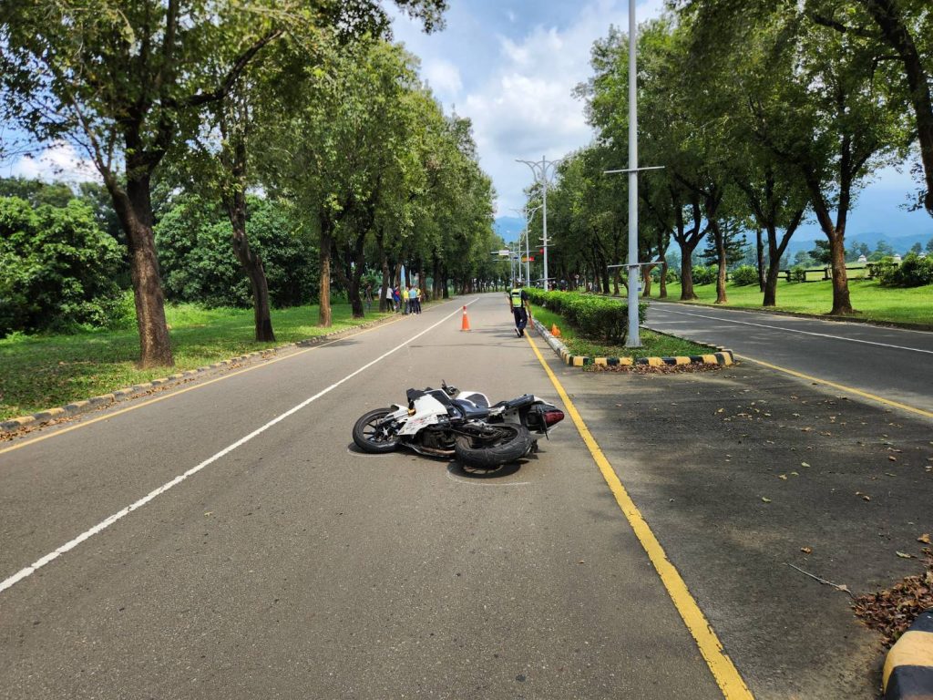 屏科大校內學府路在十月一日下午三時許,十八歲邱姓大一新生騎普通重機車行經孟祥體育館前的彎道路段時,疑因車速過快過彎失控,先自撞分隔島後再撞撞擊路燈桿,重摔倒地送醫不治。
