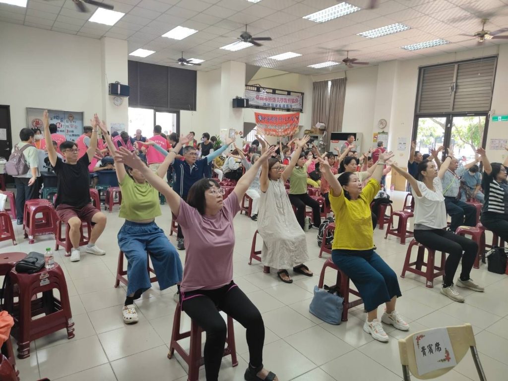 現場由永康分局警員進行性騷擾防治宣導,禪柔老師廖英琪帶領柔和伸展課程,幫助參與者學習放鬆身心、提升自我照護意識,另現場提供牛角撥經紓壓、視障按摩服務及推拿整復義診,展現協會扶持弱勢、推廣健康的社會責任。
