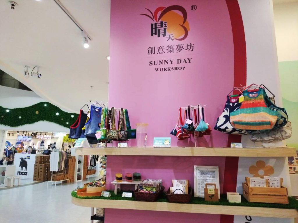 在國道三號東山務區,共展售三位晴天坊夥伴作品,有皮革製品,藍白拖鑰匙圈、特色台灣古蹟鑰匙圈;串珠吊飾與手工皂、絲瓜絡香氛皂;實用環保飲料提袋、面紙袋;拼布創作。