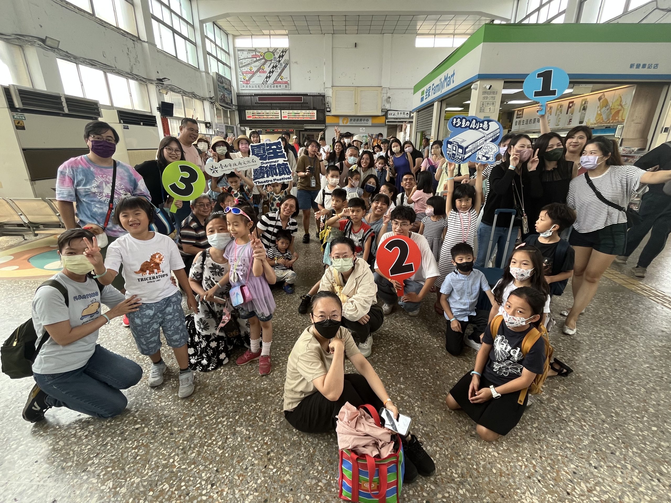 文化局說,移動劇場原定七月演出,因受西南氣流影響延期本月十二日,上午先由新營站發車至斗六站、下午再由斗六站發車回新營站;一早新營車站大廳陸續集結近一百五十位大、小朋友,新營發車的三節車廂一位難求,現場氣氛歡樂又熱鬧。