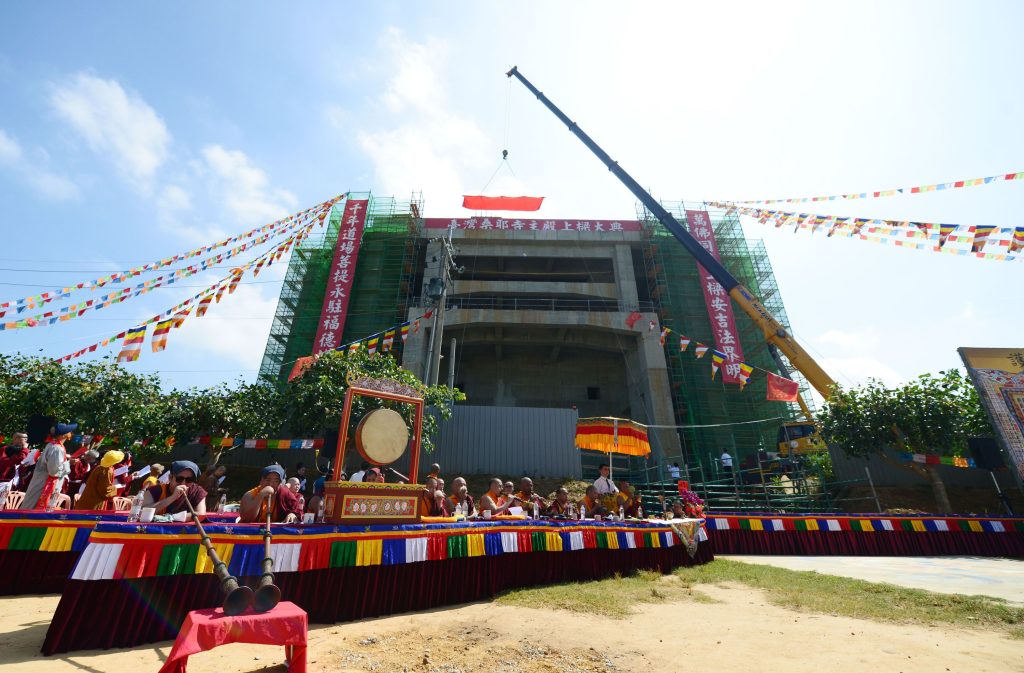 十二日上午的上樑儀式在法樂齊奏中揭開序幕,隨後簽名祈福布緩緩升起至頂,象徵善願安立,道場根基穩固。