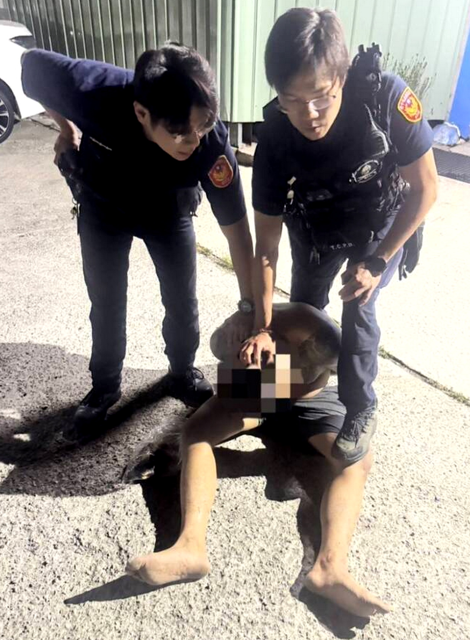 台中市第六警分局員警獲報趕抵時,只見陳男上身赤裸、滿身酒氣,情緒極度激動,完全不聽指令,員警數度高聲喝令他蹲下、放下武器,男子仍繼續胡言亂語並揮舞手中物品,現場情勢一度緊張,隨後警方果斷出手,使用警棍強勢制伏,最終將人壓制在地並上銬帶回。