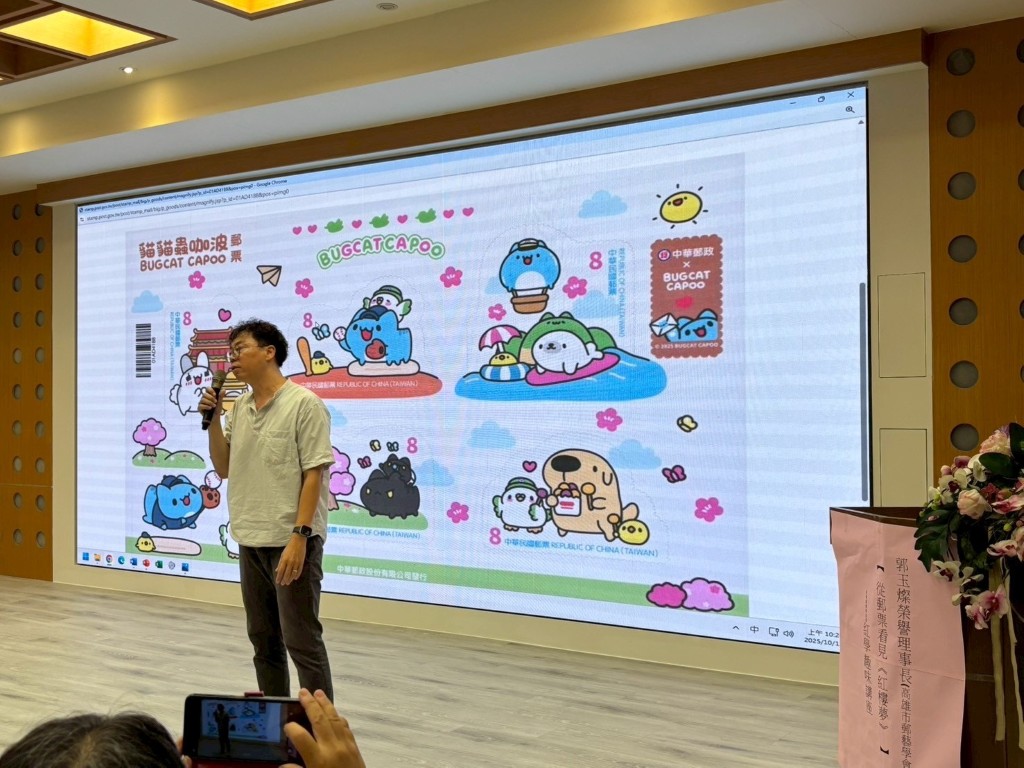 活動邀請屏東郵局企劃行銷科長洪騰煬致詞,表達郵局對推動藝文教育與郵票文化傳承的重視與支持。洪騰煬表示,郵票是文化的縮影,也是社會發展的重要見證。透過講座形式將郵票與文學結合,不僅讓民眾認識郵票背後的文化價值,更展現郵局在推廣終身學習與美學教育上的用心。