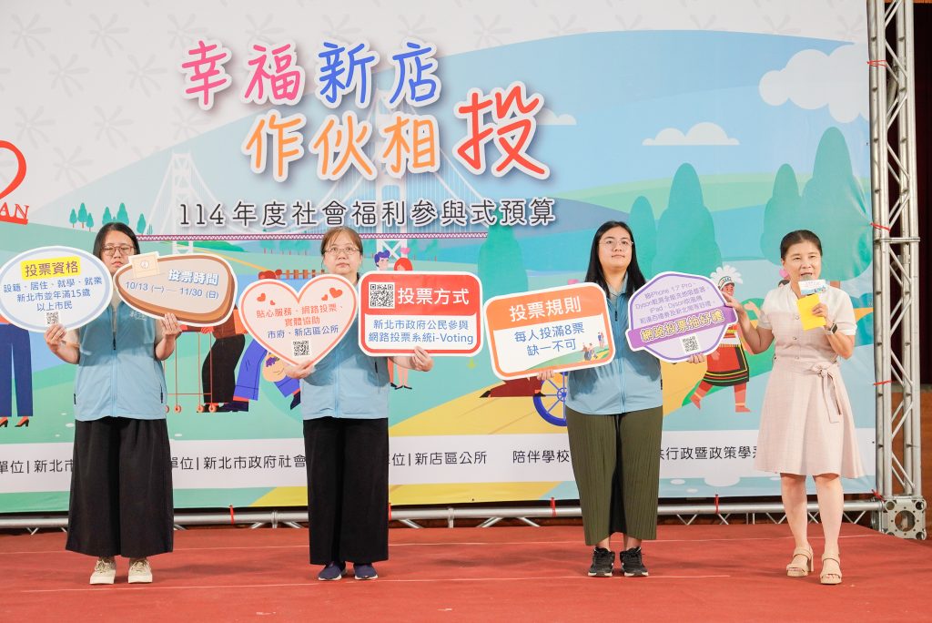 新北市社會福利參與式預算進入第10年,今年輪由新店區接棒辦理,共有超過40個公民團體和社區發展協會參與培力,最終產生18個提案,內容含括兒少、青年、婦女、銀髮族、原住民等多元服務,甚至有心理韌性、大自然守護和球類運動等。即日起開始進行提案投票,總預算300萬元,依得票結果開箱分配執行。為鼓勵投票,市府社會局祭出包含iPhone17 Pro、Dyson乾溼全能洗地吸塵器等大獎,凡年滿15歲設籍、居住、就業、就學於新北市者,皆可透過「新北VOTE」投票系統進行線上投票,須投滿8票,方屬有效票。其中設籍新店區者投票可加權2倍計算。