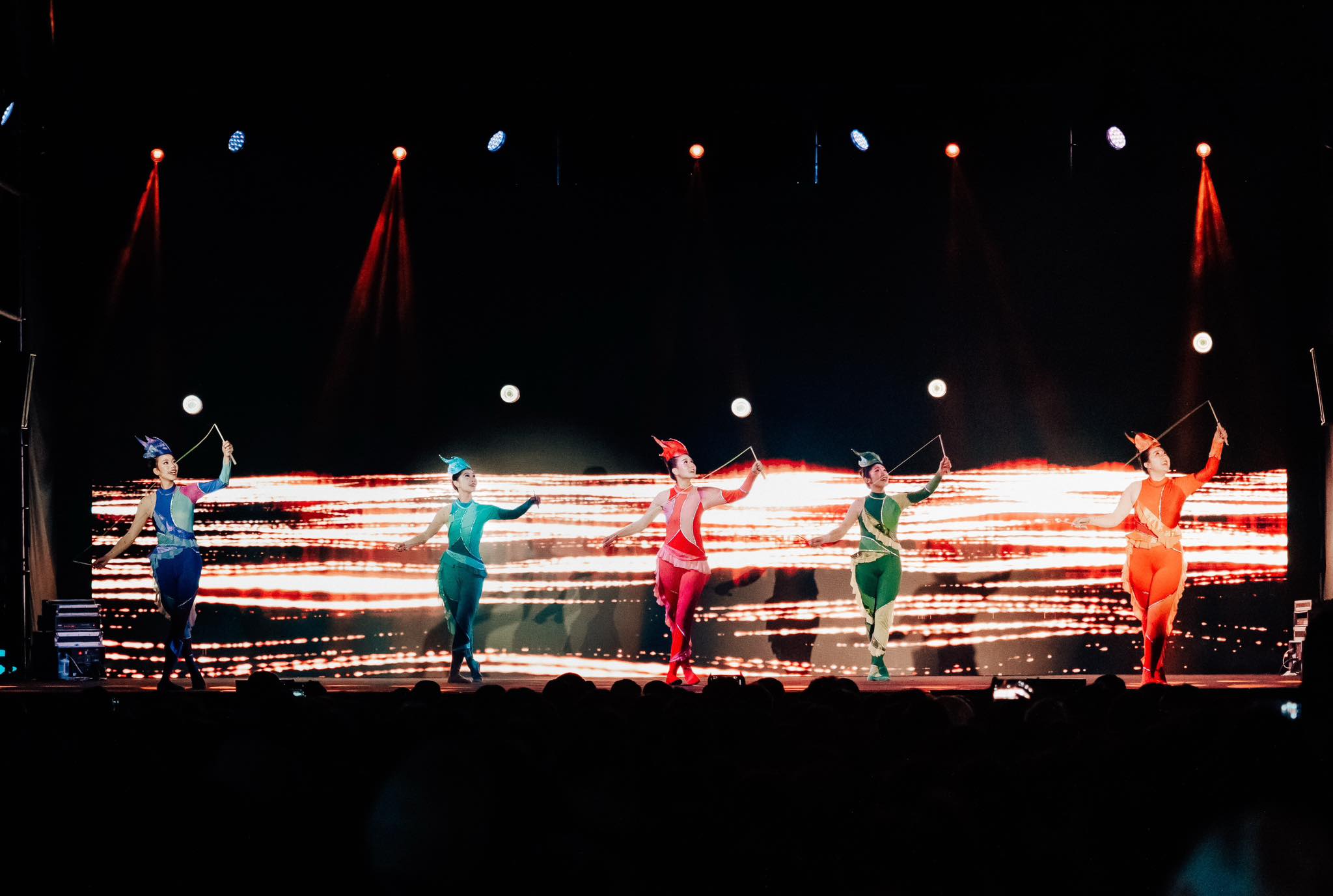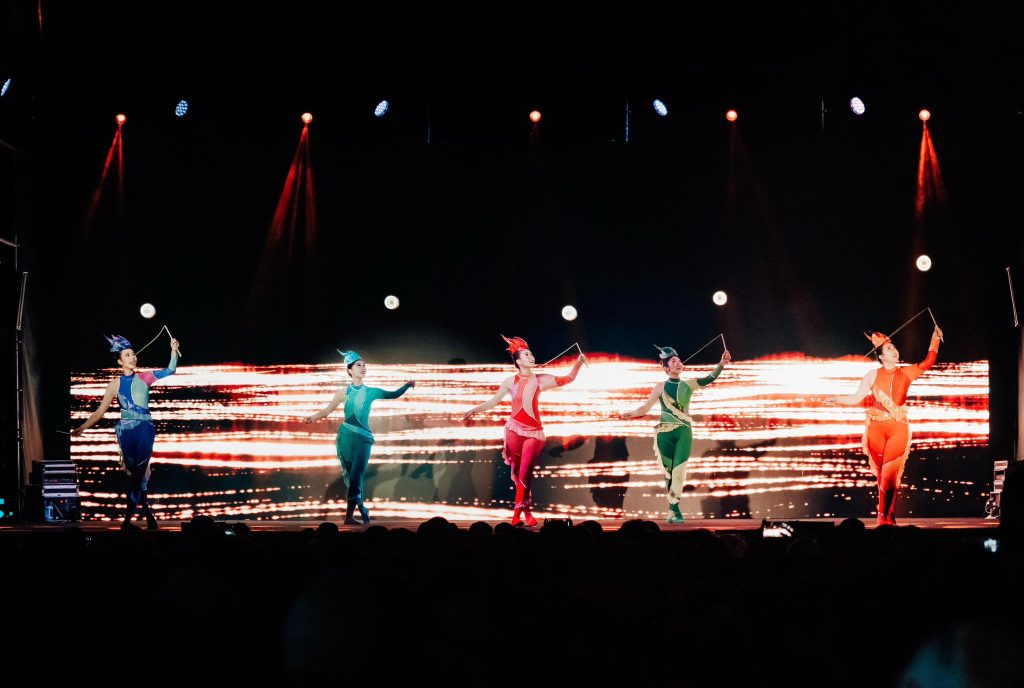 「竹風縣藝」獲英國FADA金獎,展現竹縣文化扎根在地成果,圖為在竹東戲曲公園上演的海洋慶典。(記者彭新茹翻攝)