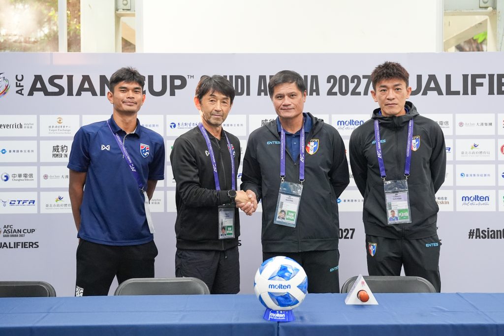 2027 亞洲盃資格賽最終輪(AFC Asian Cup Saudi Arabia 2027™ Qualifiers Final Round),中華台北將於10月14日晚間6點30分,在台北田徑場迎戰泰國。今(13)日在賽前記者會上,中華男足總教練黃哲明表示:「目標就是要拿下勝利的3分積分,相信回到主場,球員能繳出更不一樣的表現。」隊長陳柏良則說:「大家都有想贏的決心,我們要打出中華隊的球風,全力搶勝!」