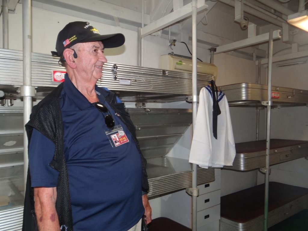 停泊在安平港支航道上的德陽艦,今年為下水八十週年暨成軍四十八週年,德陽艦特地舉辦艦慶活動,吸引多當年曾在艦上服役的弟兄們返艦同慶,除有兩位艦長回娘家,特別的是,一位曾在艦上服役的首席軍士長Warren J Hendon 也特地從美國來台參與,他並重回當年的住艙,以相同姿勢拍攝,即使歲月流轉,對艦的情感和榮譽,歷經歲月,依然閃耀如初。