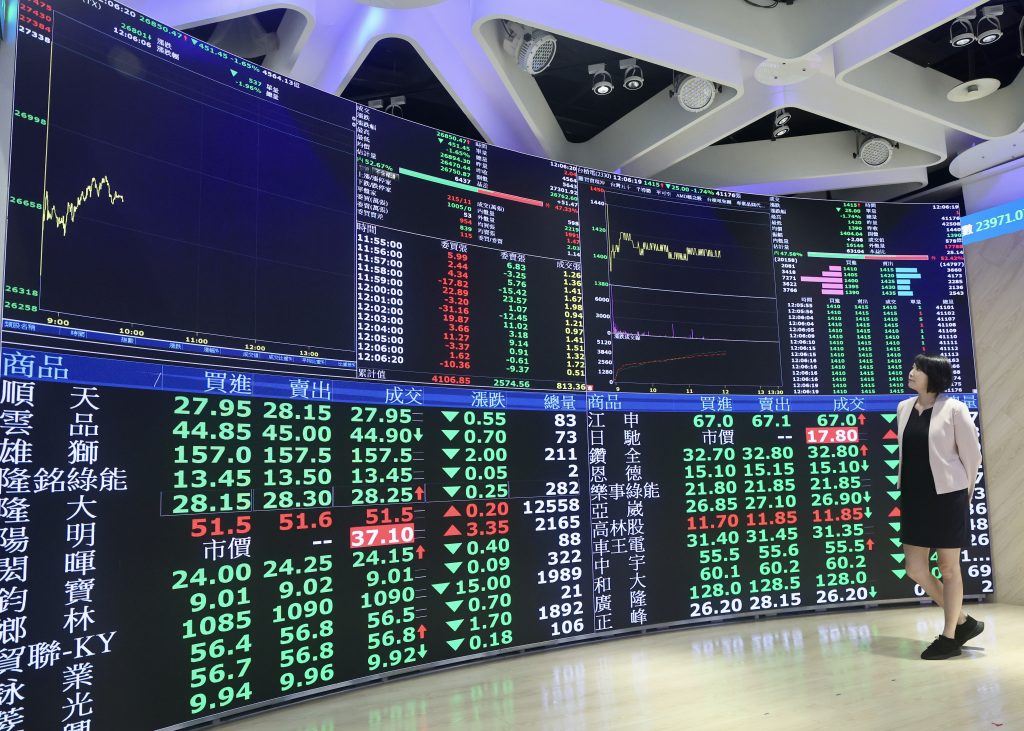 美陸再掀貿易戰,台北股市13日開盤大跌逾800點,跌破27000點,隨後跌勢快速收斂,台積電也從大跌50元縮小至跌25元。(中央社)