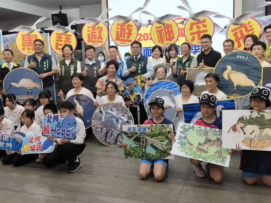 南市農業局十五日在民治市政中心一樓為黑琵保育季活動做宣傳,市長黃偉哲表示,由前台南縣長陳唐山、蘇煥智、到台南市長賴清德等人,都相重視黑琵保育,全球黑琵族群逐年成長,今年初全球普查總數達六千九百八十八隻,其中,在台灣的黑琵有四千一百卅五隻,接近全球總數六成。