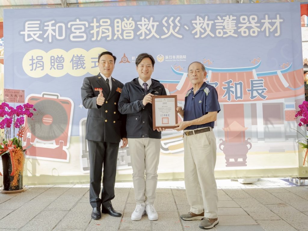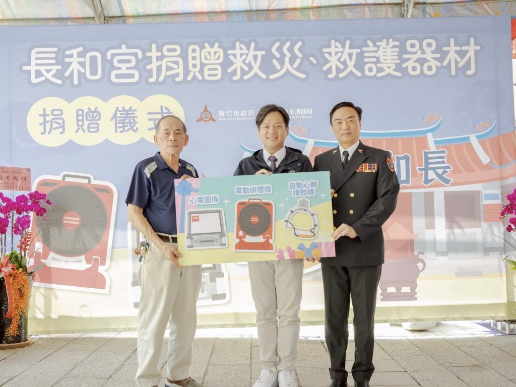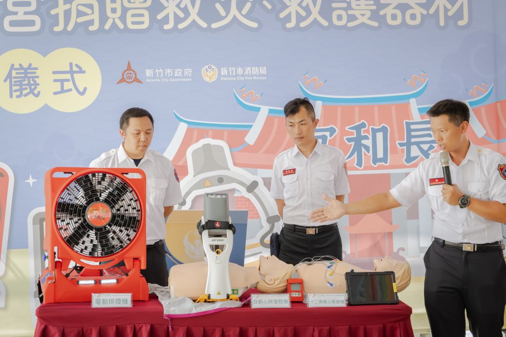 邱臣遠指出,長和宮長年關懷地方、回饋鄉里,自九十二年迄今、善心捐贈消防局累計價值一千零三十八萬元的各式車輛及裝備器材,十五日捐贈的設備包含自動心肺復甦機、心電圖監測儀以及災後大型排煙設備,保障消防同仁救災救護安全,期望藉由車輛及裝備器材的升級,讓消防弟兄能夠更加有效率的執行各式任務,守護新竹市民公共安全,讓市民們更加幸福有感。