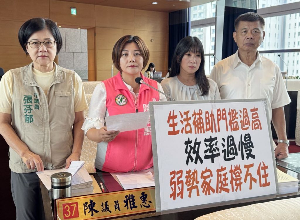 市議會15日舉行民政委員會業務質詢,市議員陳雅惠、謝家宜、張芬郁、蕭隆澤、陳淑華、陳俞融等多位議員關注弱勢家庭補助問題。 陳雅惠指出,目前市府針對經濟弱勢兒少提供每人每月3,000元生活補助,原則六個月、最長一年;但今年4到7月,全市僅服務88人次、核發金額25萬元。她痛批:「台中286萬人口,一季才88人受惠,是制度門檻太高,還是根本沒宣導?」