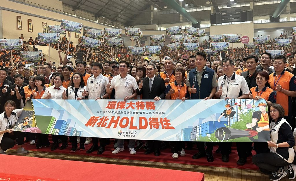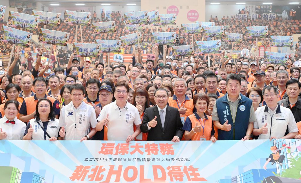 新北市府環保局「一一四年清潔隊員節暨績優清潔人員表揚」十五日在板橋體育館熱鬧登場,市長侯友宜前到向全體清潔夥伴致意,及表揚一一0名績優清潔隊員(包括職安衛管理人員等),並宣布每二年一次的清潔隊員健康檢查補助將提升至五千元,全台首創增列隊員肺部低劑量電腦斷層檢查項目。
