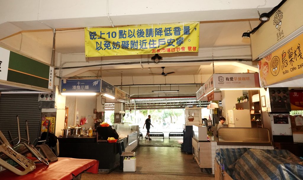 傳統市場白天營業,晚上通常都關門養蚊子,現在有了新契機。友愛市場白天攤販打烊後,有一票年輕人跑去承租攤位,從下午四時開始營業,以年輕人喜愛的特色美食和居酒屋、PUB為主,每週以週四至週日人潮最多,等於也活化了傳統市場。