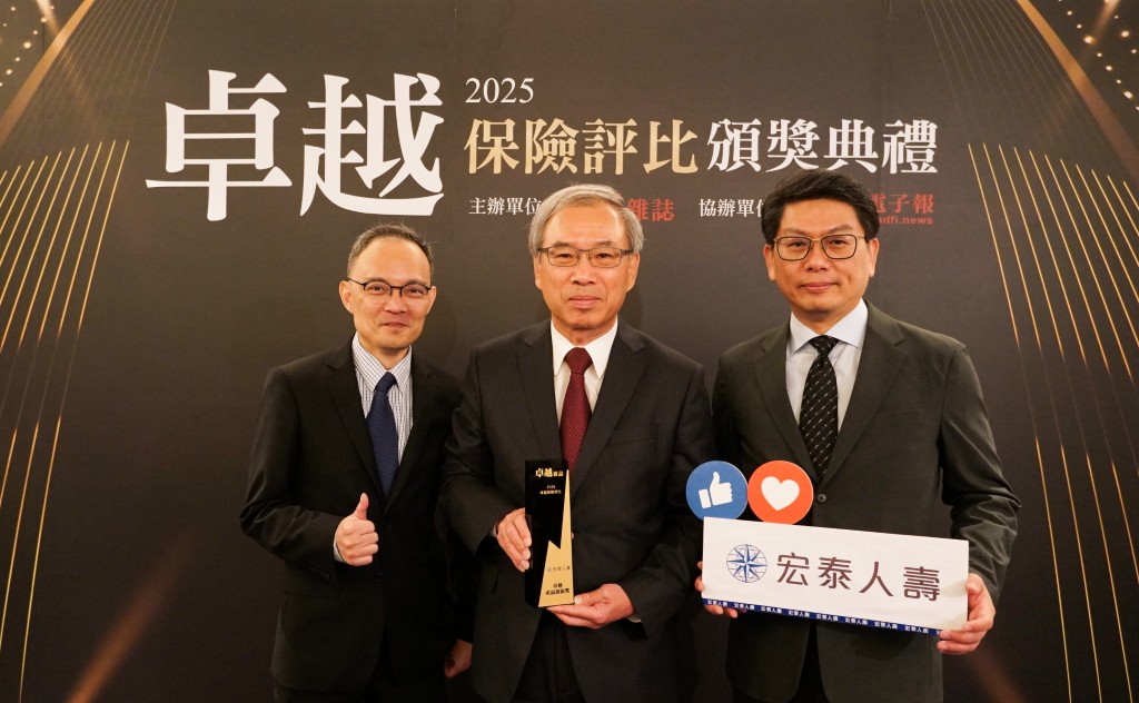 台灣邁入超高齡社會,因應此一社會趨勢及保戶需求,宏泰人壽持續創新保險商品,使其與時俱進,協助保戶為人生做最好的規劃與準備。宏泰人壽在保險商品的用心獲得2025年卓越保險評比的獎項肯定,獲頒「卓越產品創新獎」,由金管會主委彭金隆頒獎,宏泰人壽董事長李啓賢代表受獎。