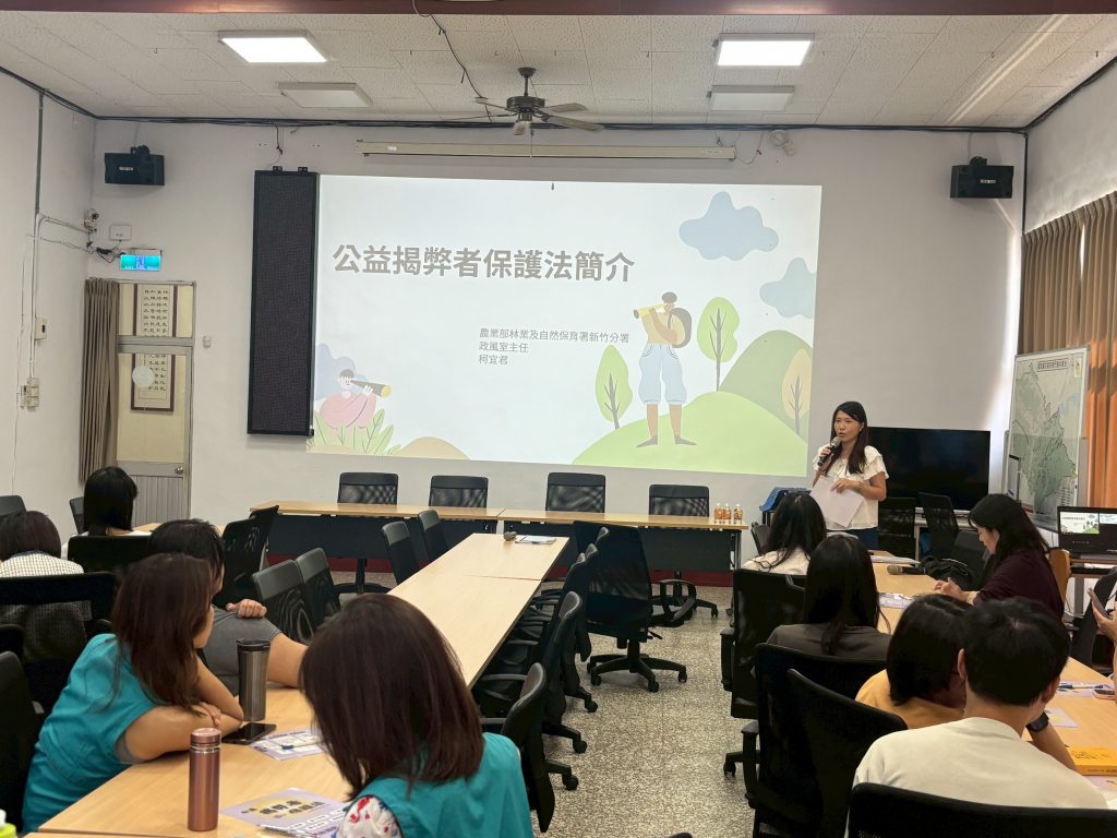 為強化基層公務人員廉能意識與法治觀念,新竹縣關西鎮公所日前舉辦「廉政法紀教育」系列講習公益揭弊者保護法,邀請林保署新竹分署政風室主任柯宜君擔任授課講座,柯宜君深入淺出的說明,讓與會人員受益匪淺。