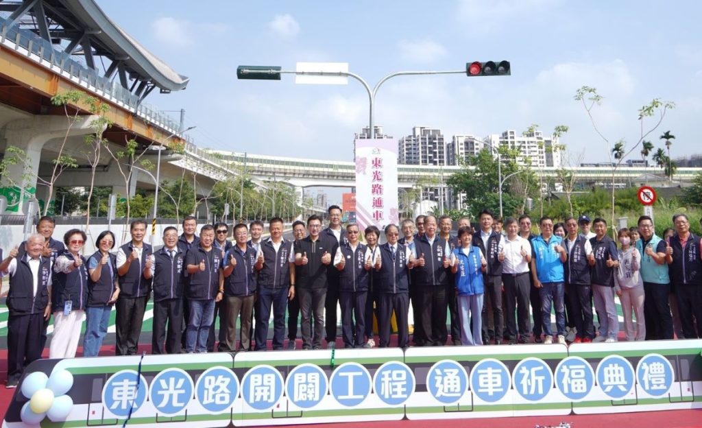 台中北屯區南北向主要幹道「東光路」首階段工程十六日正式通車,由建設局長陳大田與民政局長吳世瑋代表盧秀燕市長共同主持通車祈福典禮,象徵北屯交通建設再邁新里程,將有效改善松竹路與東山路一帶交通,並強化捷運與台鐵松竹車站聯外功能。