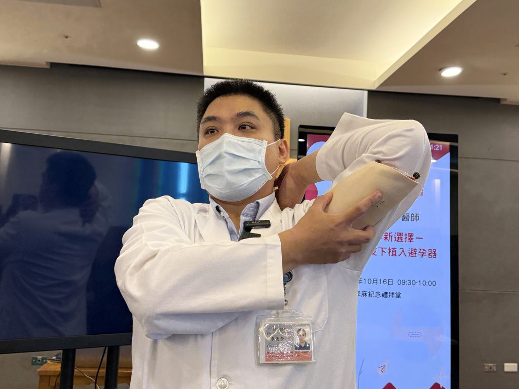 皮下避孕植入劑,植入非慣用手臂皮下只需5分鐘時間,避孕成功率高。(記者鄭錦晴攝)
