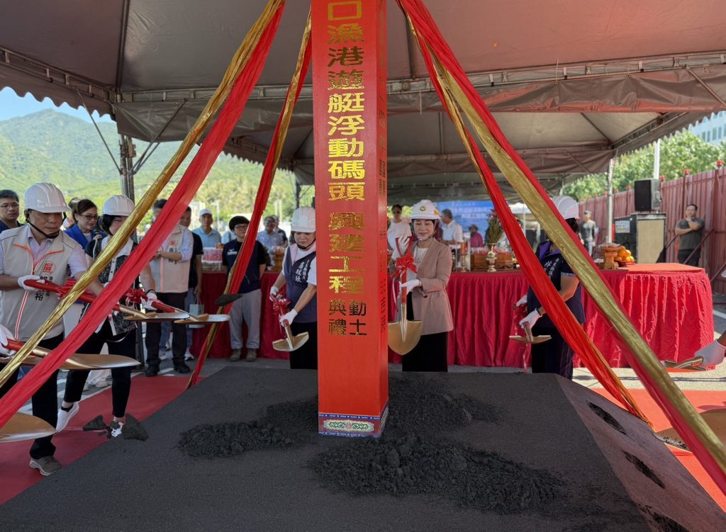 車城海口漁港遊艇浮動碼頭興建工程動土。(記者鄭伯勝翻攝)
