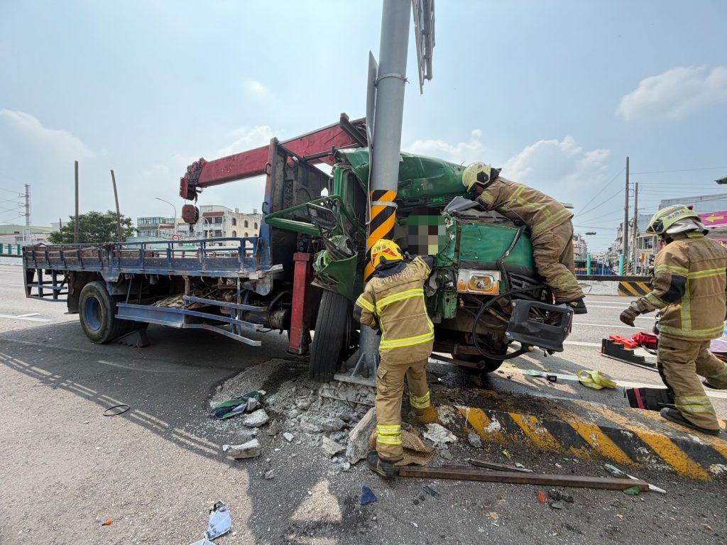 十六日中午十二時十六分,消防局接獲報案,台一線官田區中華路發生車禍,第二救災救護大隊出動官田、麻豆分隊三車、警消七人前往救援。現場一片狼藉,大貨車因撞上橋頭的號誌桿,造成右車頭受損嚴重,坐右前副駕駛座的四十多歲陳女受困,當場無呼吸心跳,消防人員使用破壞器材才將傷者陳女成功救出脫困,由官田分隊救護車送往柳營奇美醫院急救中。