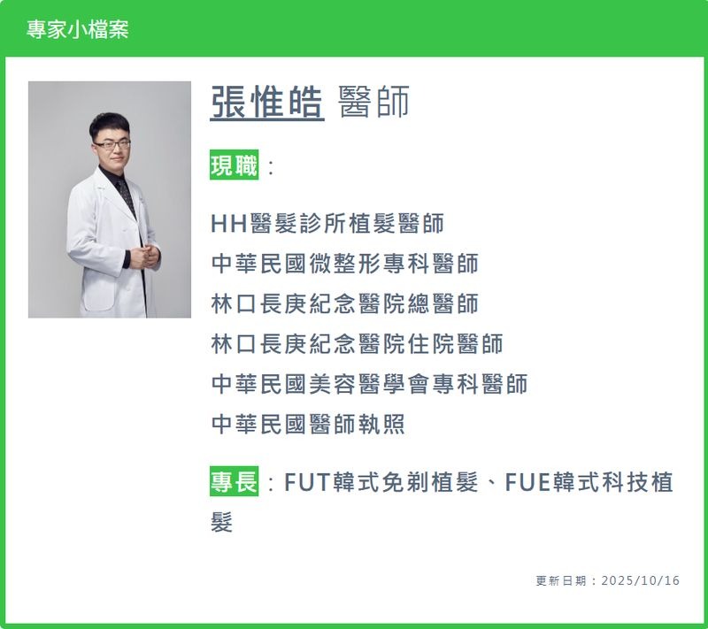 最後張惟皓醫師提醒,植髮術後的照護與追蹤非常重要,一定要選擇有合法執照、經驗豐富和有安排術後定期追蹤的醫療院所,才能提升植髮的成功率、美觀並有助於降低手術風險。