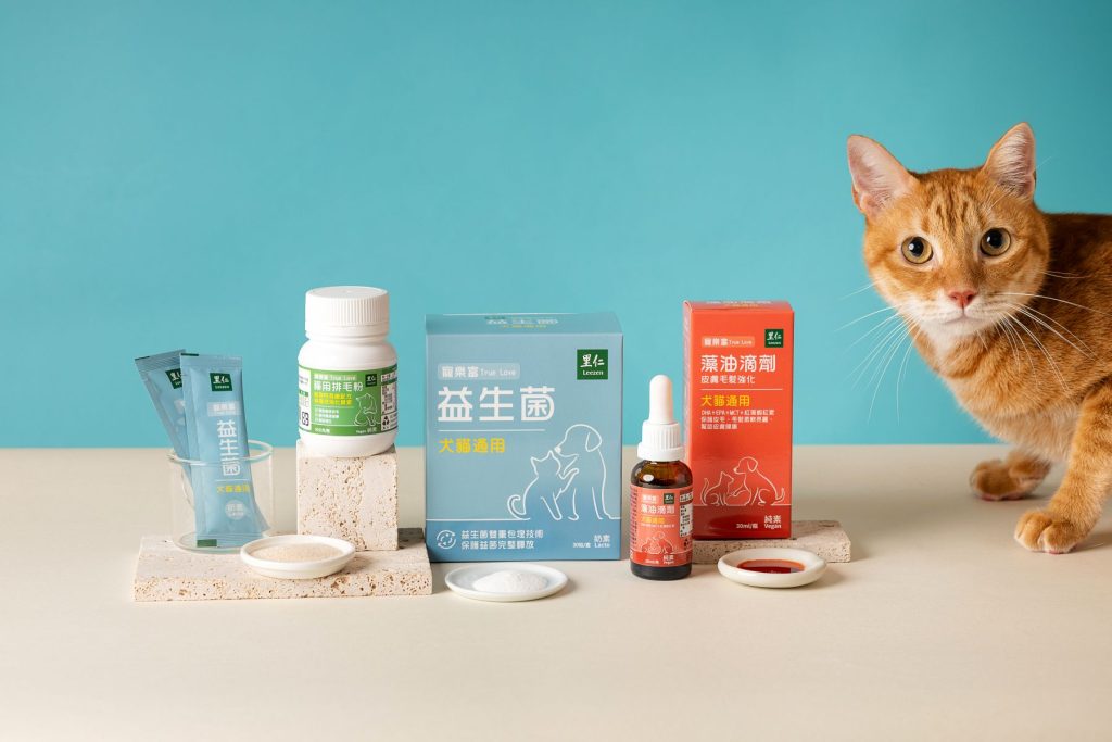 首波推出的四款產品皆以照顧毛孩健康與環境共好的理念出發。犬貓全齡適用的「寵樂富藻油滴劑」,以純素紅藻蝦紅素取代魚油,維持毛髮與皮膚健康;「益生菌」採植物性蛋白包埋技術,搭配三種機能型益生菌,幫助調整腸道菌相、減少異味,維持消化健康;「貓用排毛粉」針對貓咪舔毛習慣設計,以綜合消化性酵素、天然膳食纖維取代高油脂化毛膏,減輕腸胃負擔,促進腸胃蠕動,幫助廢毛排出;「田裡有貓砂」則以本土稻殼、松木屑料與茶葉製成,賦予農業廢棄物新價值,粉塵少、吸水快、不黏底,茶多酚成分自然除臭,淡色外觀也便於觀察貓咪健康,兼顧實用與環保。
