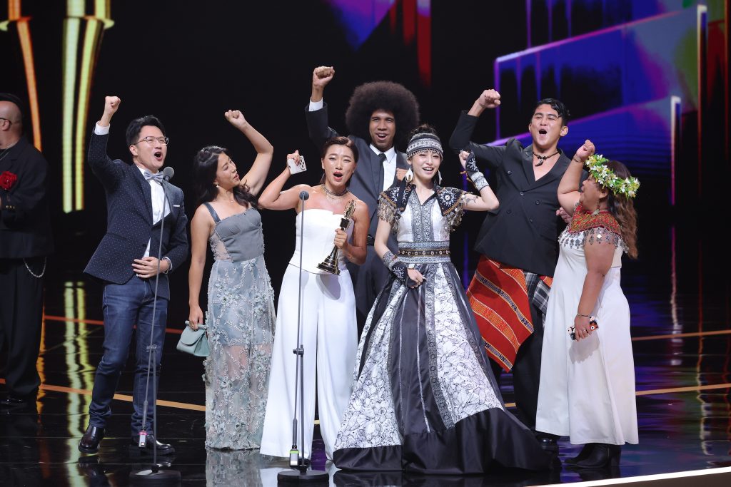 睽違15年再合體的棒棒糖(Lollipop),以「來吧!哪裡怕」奪得「實境節目主持人獎」,敖犬、小煜、威廉、阿緯、小杰、王子和朵拉Dora上台領獎。