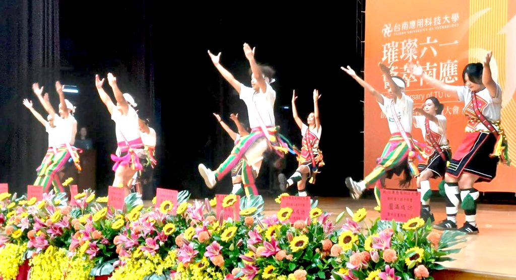 台南應用科大十八日以「璀璨六一‧薈萃南應」為主題,歡慶六十一歲生日,除校友回娘家等系列,並由舞蹈系二0二五北海道踩舞祭演出節目—《舞影隨形‧讚山櫻》擊鼓開場,舞姿綻放如櫻飛舞,象徵南應人堅毅與創造力的延續,整個校園洋溢一片喜氣。