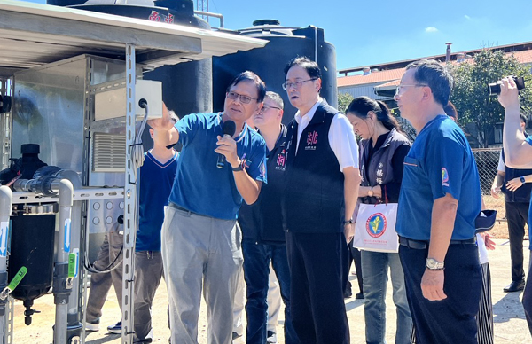 桃園茶改場舉辦場慶,桃園市長張善政前往致意並參觀茶改場設計的智慧灌溉系統。(桃園市府提供)