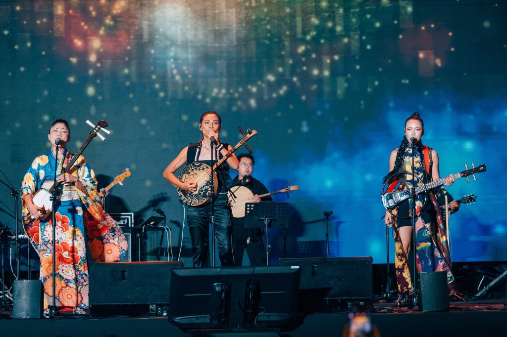 2025半島世界歌謠祭重頭戲18日晚間在恆春西門廣場登場,由金曲歌手戴曉君攜手民謠傳藝師與小朋友,以及長期深耕澳洲的日本三味線演奏家 Noriko Tadano、旅美彈撥音樂家 NINI,以民謠融合搖滾風,帶來耳目一新的跨界演出。