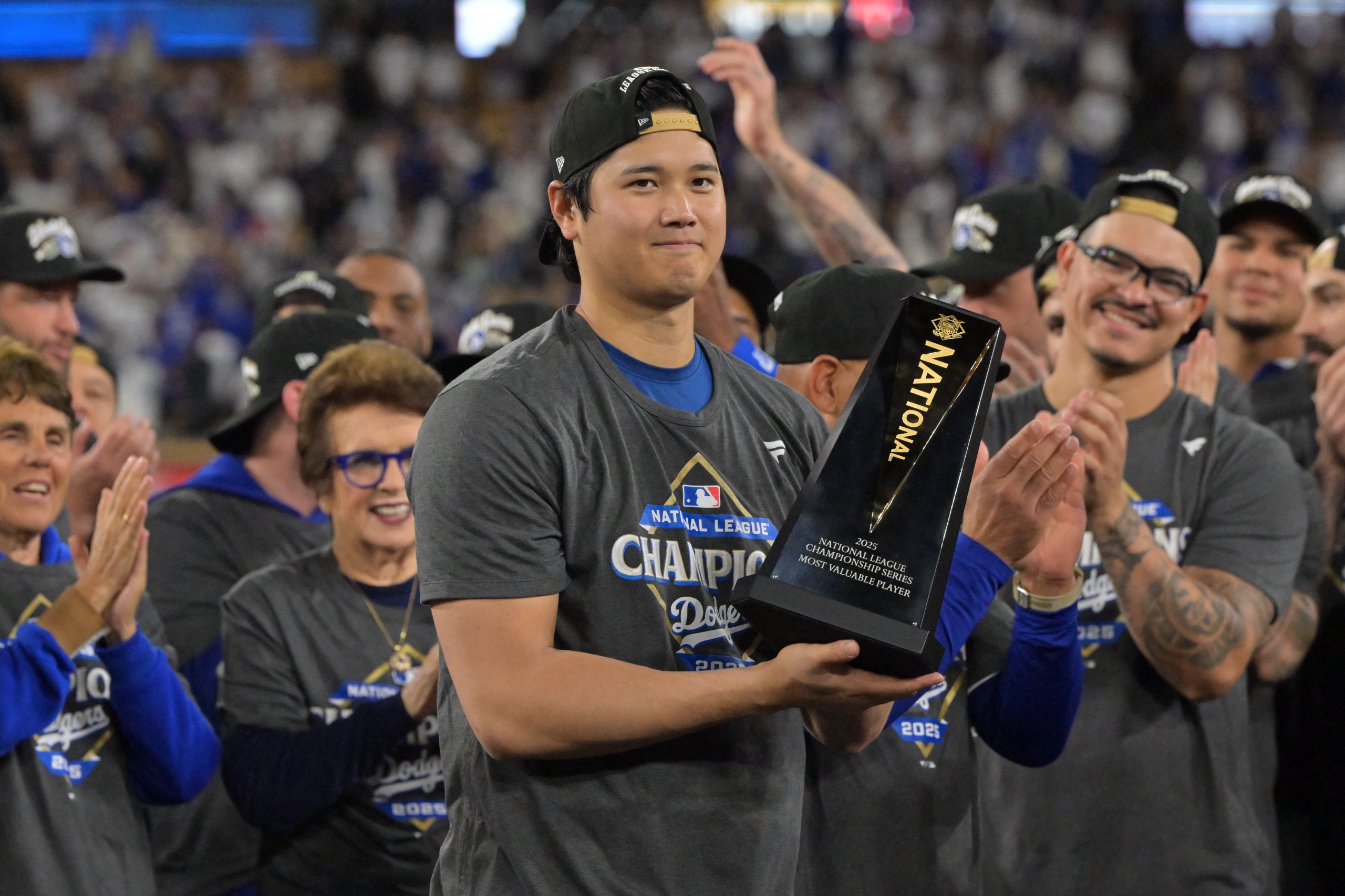 美國職棒大聯盟MLB國聯冠軍系列第4戰,洛杉磯道奇大谷翔平當地時間17日主投6局10K零失分外帶三響砲,率道奇以5比1橫掃密爾瓦基釀酒人封王,晉級世界大賽。大谷賽後將國聯冠軍賽MVP榮耀獻給球迷,教頭和隊友紛紛讚嘆他的神級演出。