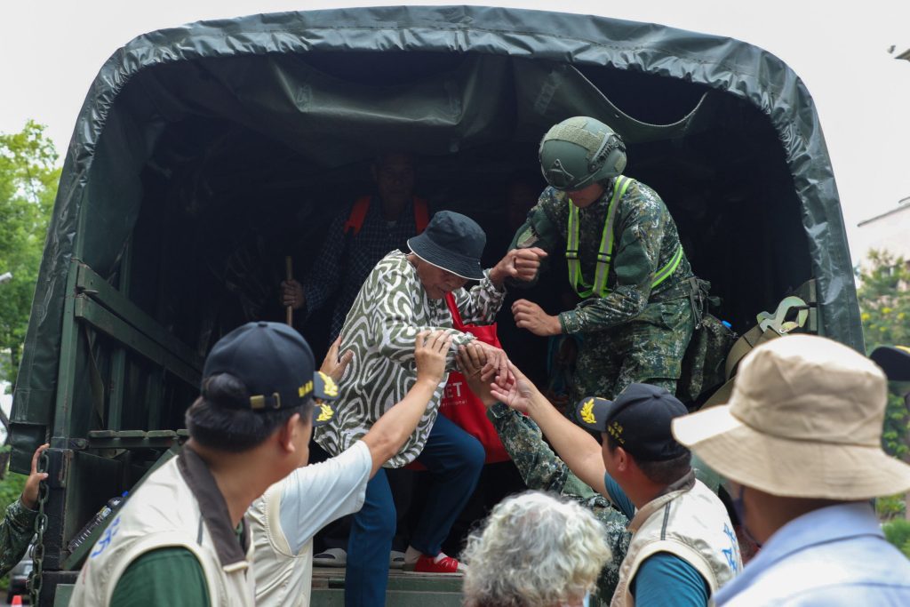 為降低花蓮馬太鞍溪堰塞湖紅色警戒,花蓮縣光復鄉等地十八日下午舉行風神颱風及堰塞湖警報居民疏散撤離演練。