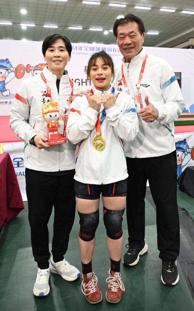 「舉重精靈」方莞靈在一一四年全運會女子舉重49公斤級賽事封后。(市府提供)